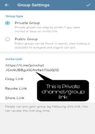 - Private channel - If you don't set username for channel, it will be private. People can only join channel when they have your channel link.